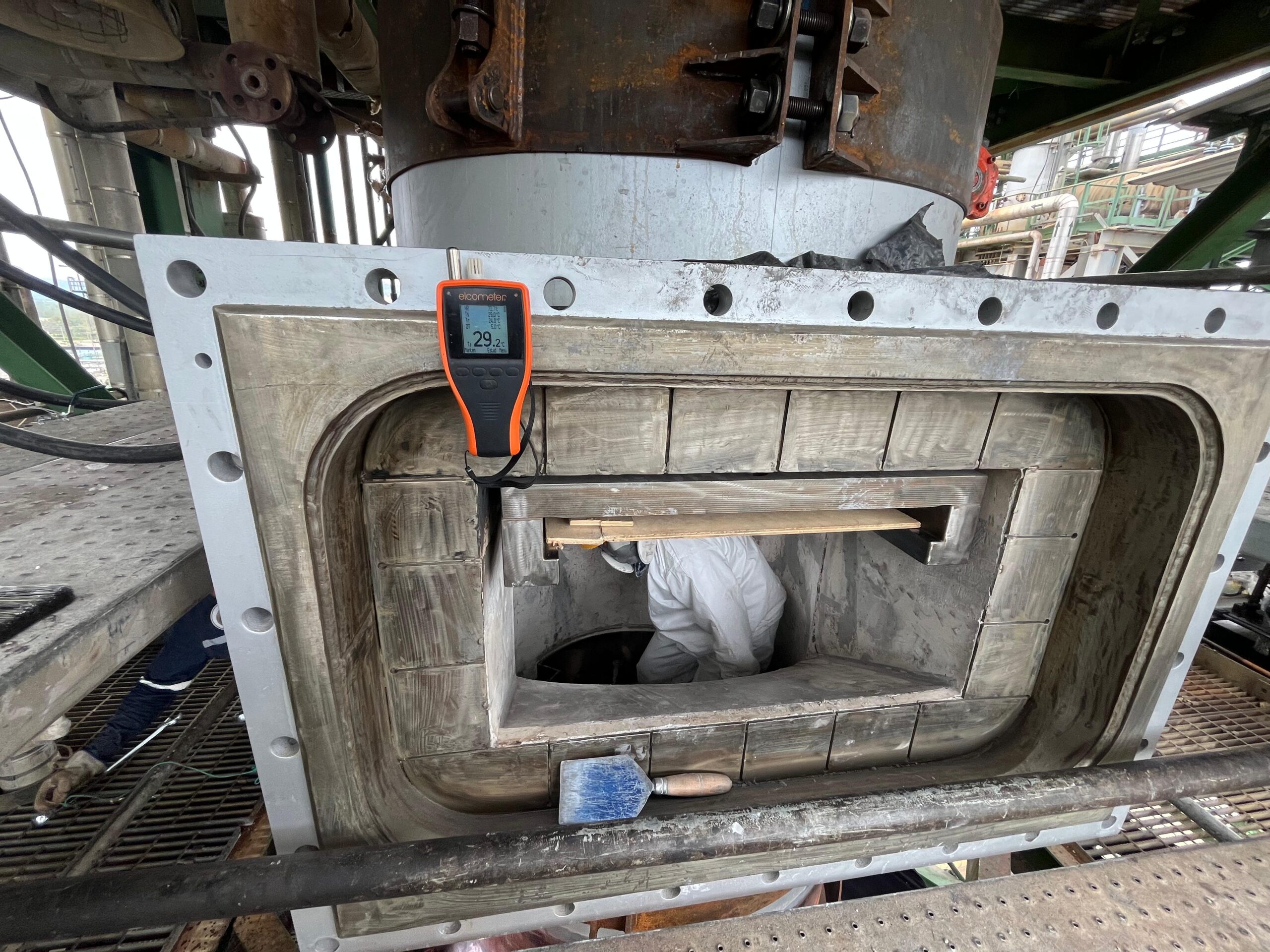 Monitoreamos cada etapa del proceso: mezclado, consistencia, espesor y continuidad del revestimiento. Siguiendo los lineamientos API 936 garantizamos que el material cumpla con su desempeño térmico y mecánico.
