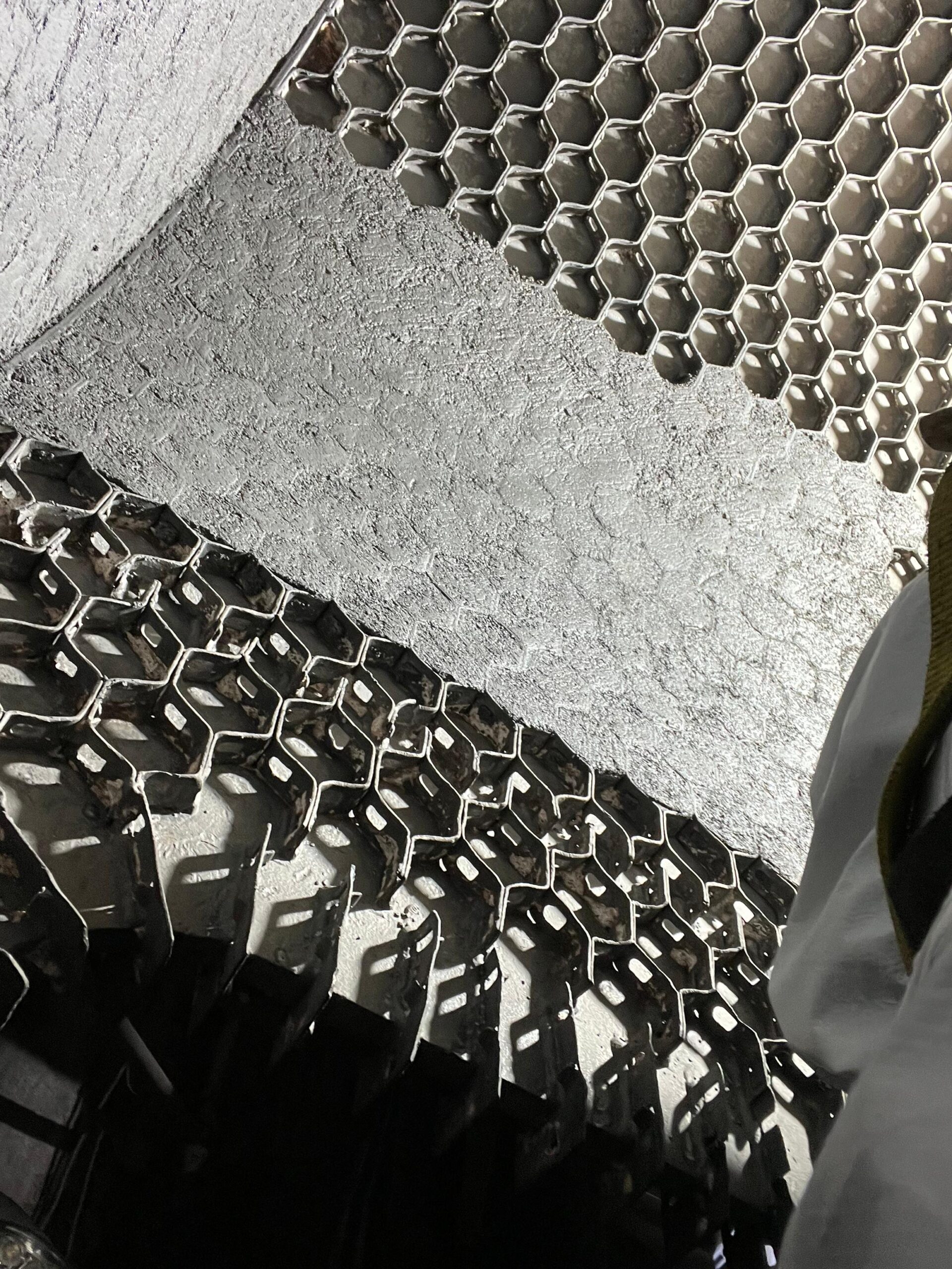 Aseguramos que la base esté lista para recibir el refractario mediante inspección del sustrato, limpieza, revisión de soldaduras y verificación de patrones de anclaje. Una instalación confiable comienza con una preparación correcta.